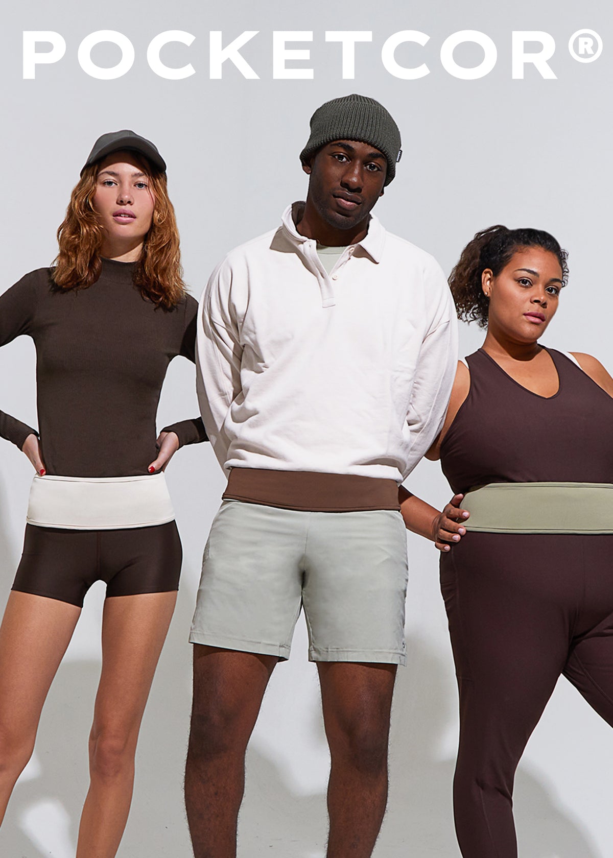 PocketCor® (Pockets, Around Your Core) is the new slim and stylish solution that carries your valuables on the go - while discreetly blending into any outfit. Our products are functionally engineered for workouts, with a snug compression fit, and fashionably designed for everything else.